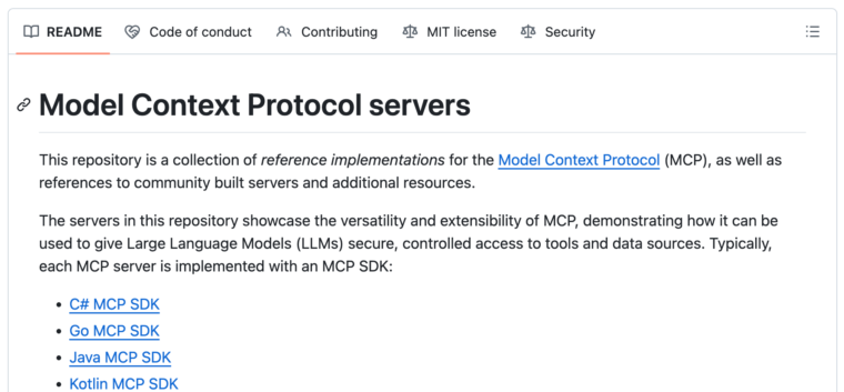 AnthropicのMCPサーバーのGitHubリポジトリには、サードパーティ製を含む多数のMCPサーバーへのリンクが掲載されています。